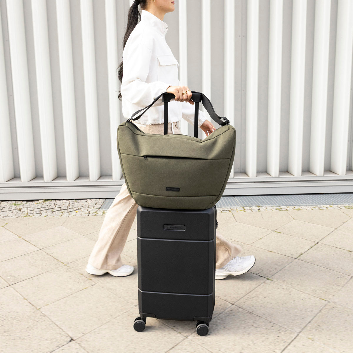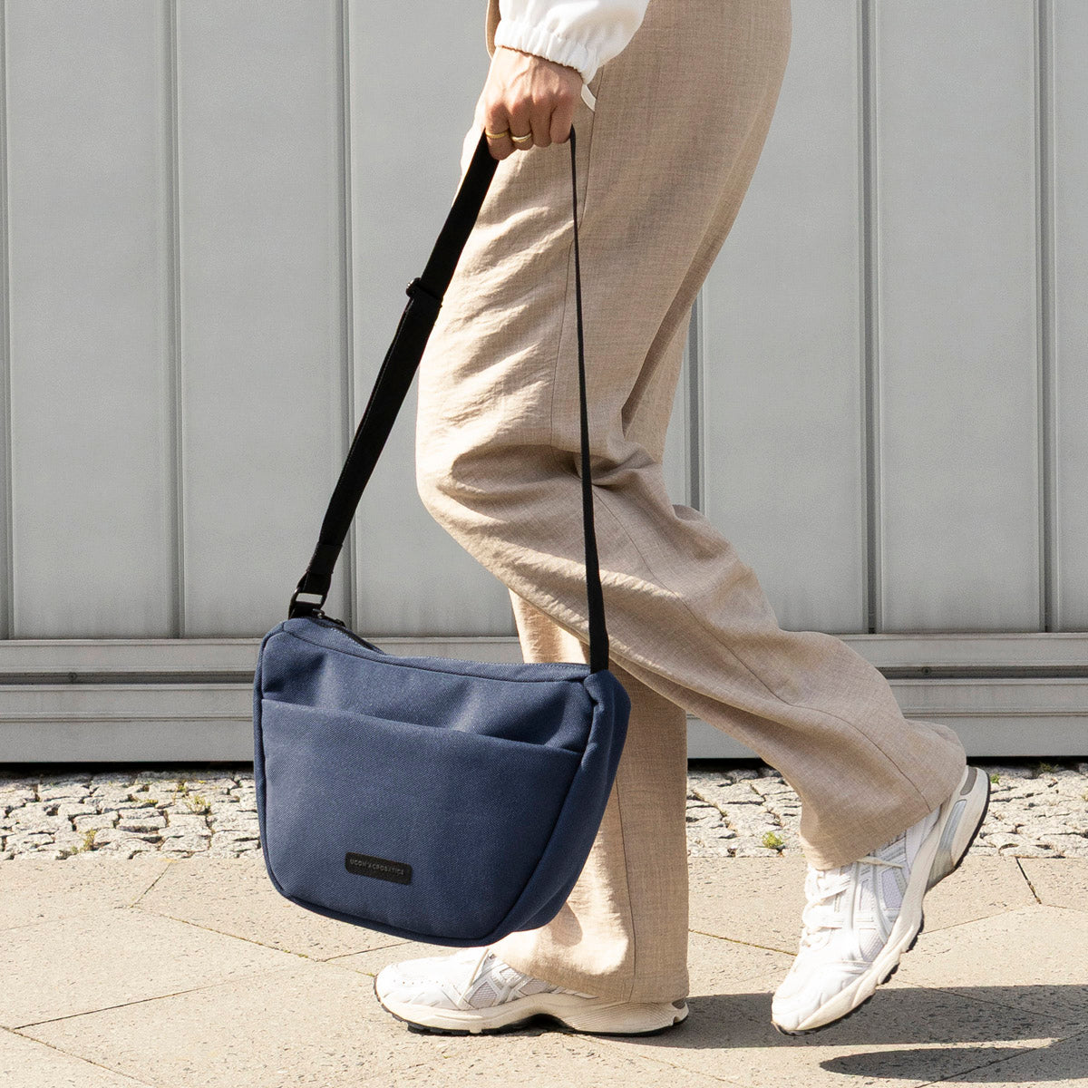 This practical half-moon bag combines a minimalist design with a modern look. Adam Medium Bag features a secure zippered pocket on the outside for extra storage. The back pocket allows for quick access and doubles as a trolley sleeve - perfect for travel. Inside, it surprises with generous storage space and offers enough room for everyday must-haves, which can be stored in a zippered pocket and two open compartments.