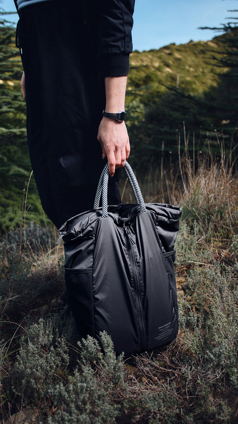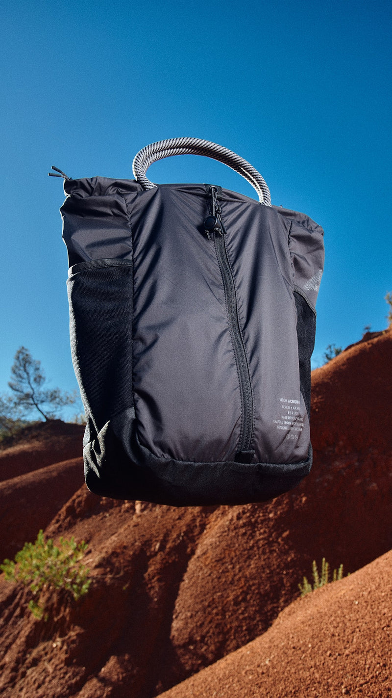 Essential parts feature ultra-light spacer fabric integrated into the construction to provide extra support while keeping it easily packable. The Air Series is made from recycled textiles and designed for circularity, with a mono-material rate close to 100%. Feels like nothing – carries everything.