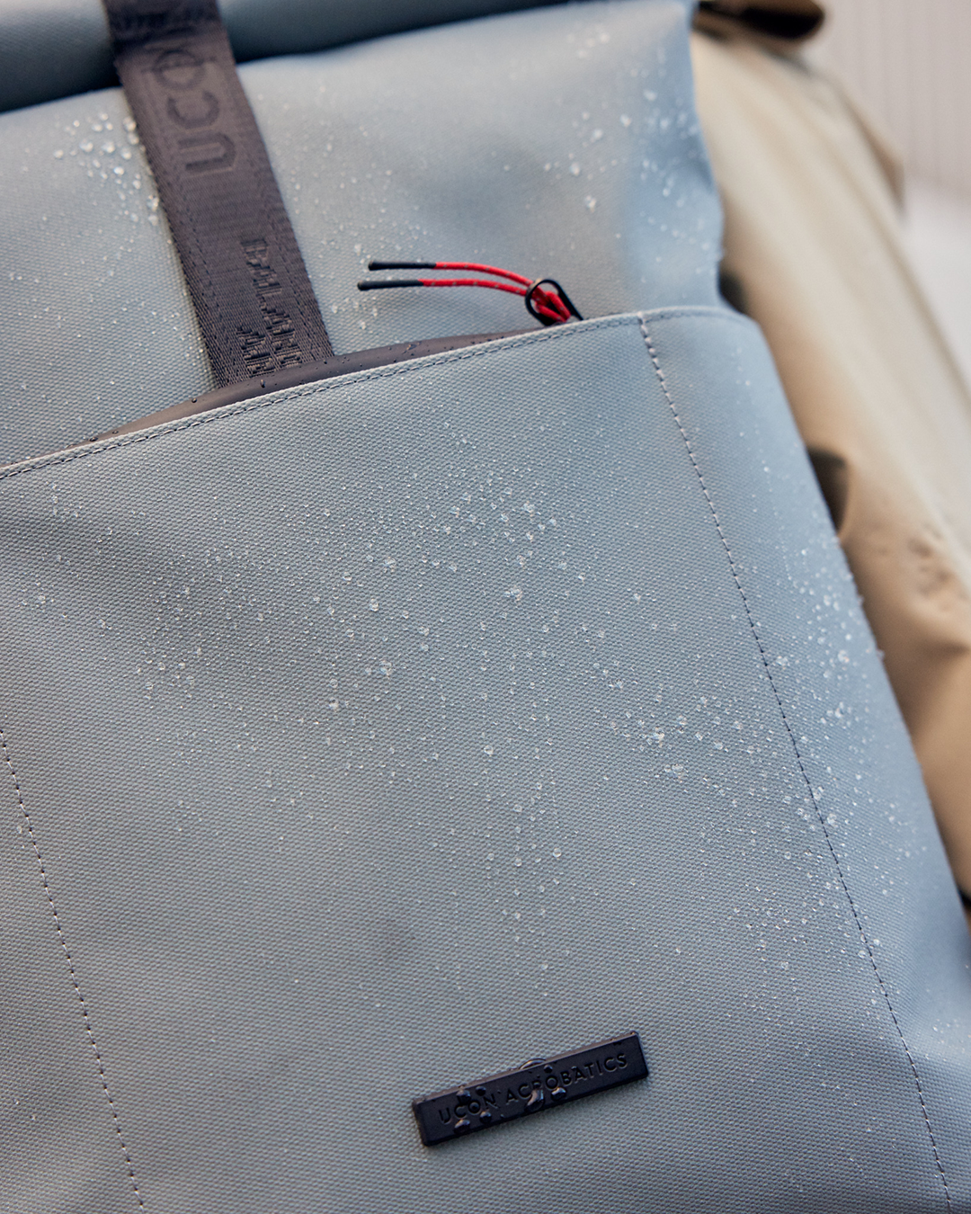 The hydrophobic coating allows water to drip off and is free of fluorocarbons. Due to another layer on the inside, this outer fabric is also waterproof, just like all our outer fabrics. However, we classify this product as 'water repellent'. In heavy and persistent rain, water may penetrate through the seams due to the construction. Therefore, we recommend a rain cover in such weather.