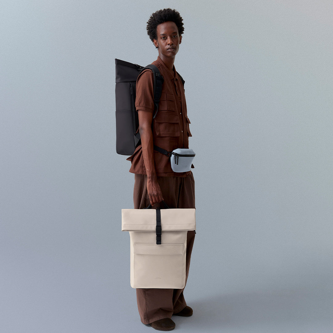 Sustainability doesn't always have to look 'eco'. In our case, you can hardly tell the difference. Often they are not visible, because we look where no one looks. Hard plastics and foams are hidden in every backpack sold today. We have found a way to avoid all of that and use textile waste instead.