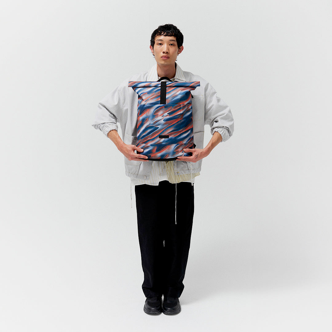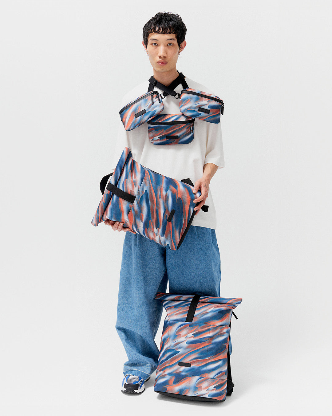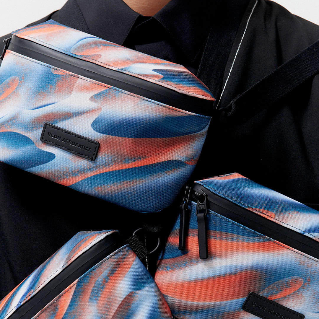 The main material is printed using a high-resolution sublimation process, designed by one of our most favourite and talented artists. Manuel Carvalho is a Berlin-based freelance 3D designer and art director. His artwork for Ucon Acrobatics has a modern camouflage aesthetic, blending organic and abstract forms with a contemporary edge. The use of layered, overlapping shapes gives the piece a dynamic, spray-painting look, where the textures appear as if they were applied in a spontaneous yet controlled manner. This art style exudes a sense of urban coolness, combining a raw, street-inspired vibe with a refined, minimalist approach.