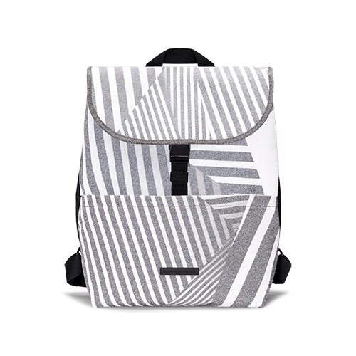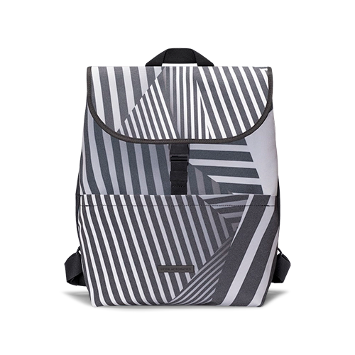 Notre matériau principal spécialement développé réfléchit dans l'obscurité et établit de nouvelles normes. Il a été fabriqué à partir de textiles recyclés, puis imprimé à l'aide d'un procédé de sublimation haute résolution et conçu par l'un de nos designers talentueux et réputés. Fons Hickmann est un designer en communication visuelle basé à Berlin. Son œuvre pour Ucon Acrobatics illustre une exploration audacieuse des illusions d'optique et de l'abstraction géométrique. Le design utilise des motifs rayés noirs et blancs qui s'entrecroisent et se chevauchent pour créer un effet tridimensionnel fascinant. L'œuvre d'art est fortement influencée par l'« op art », utilisant des lignes et des formes très contrastées qui semblent se déplacer et pulser lorsque vous les regardez.