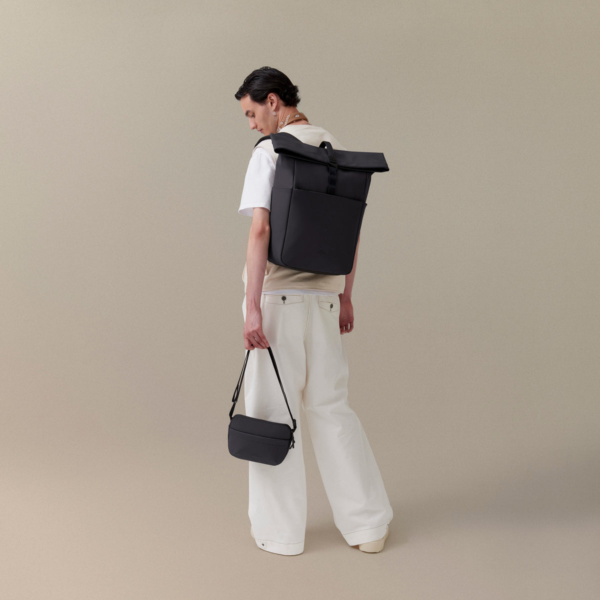 Sustainability doesn't always have to look 'eco'. In our case, you can hardly tell the difference. Often they are not visible, because we look where no one looks. Hard plastics and foams are hidden in every backpack sold today. We have found a way to avoid all of that and use textile waste instead.